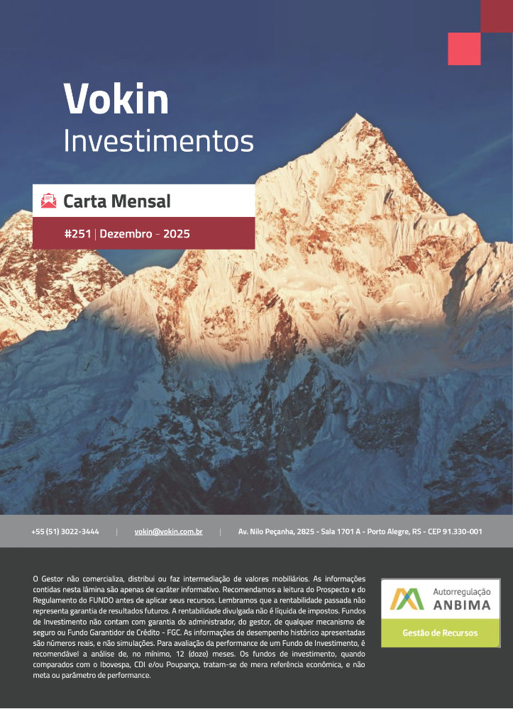 Prezados Coinvestidores, Encerramos outubro de 2025 com rentabilidades acumuladas, no ano, de +26,7% nos Fundos Vokin GBV Aconcágua e Vokin GBV Aconcágua 30, e +19,5% no Fundo Vokin K2, período… Continue lendo a Carta Online